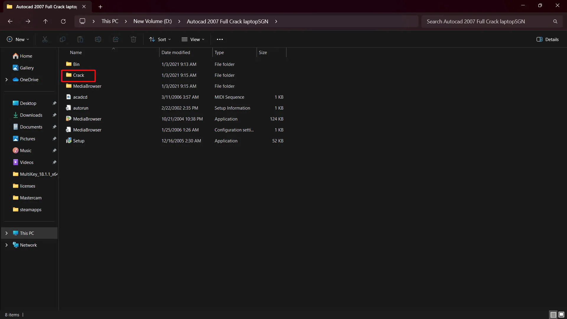 Truy cập vào thư mục crack của bộ cài AutoCAD 2007Truy cập vào thư mục crack của bộ cài AutoCAD 2007