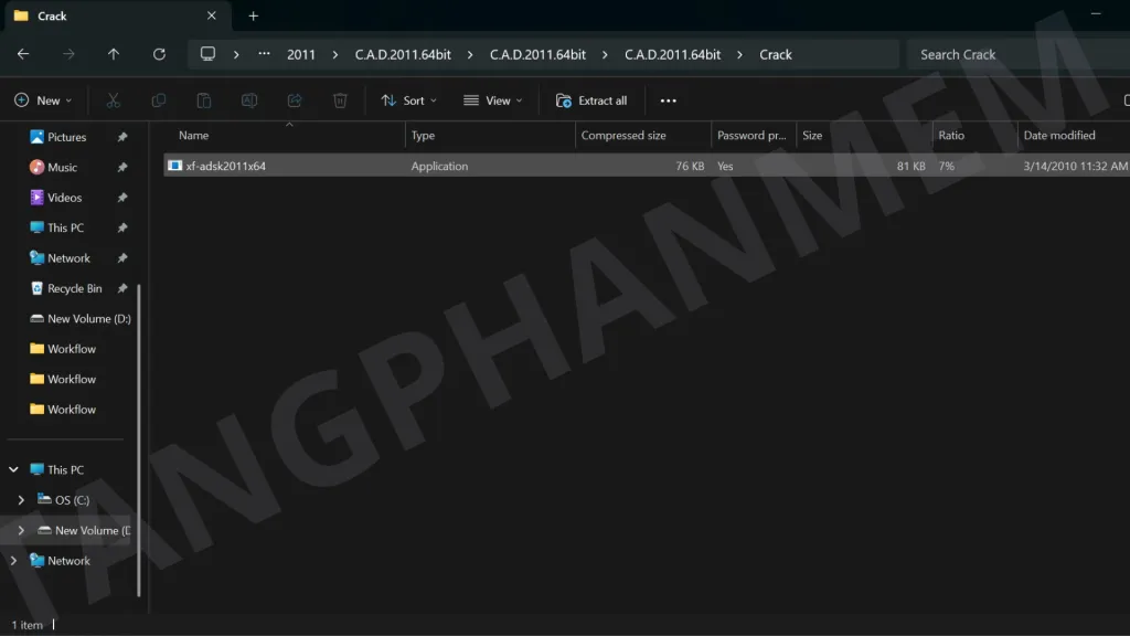 Quay trở lại thư mục Crack, mở file “xf-adsk2011x64”.