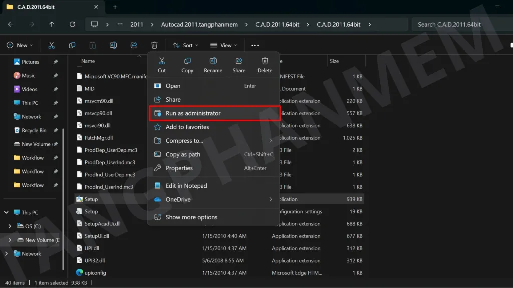 Tiếp theo, tìm đến thư mục vừa giải nén, mở file có tên “Set-up” và chọn “Run as administrator” để chạy file cài đặt với quyền quản trị viên. Điều này đảm bảo phần mềm có đủ quyền để thực hiện các thay đổi cần thiết trên hệ thống.