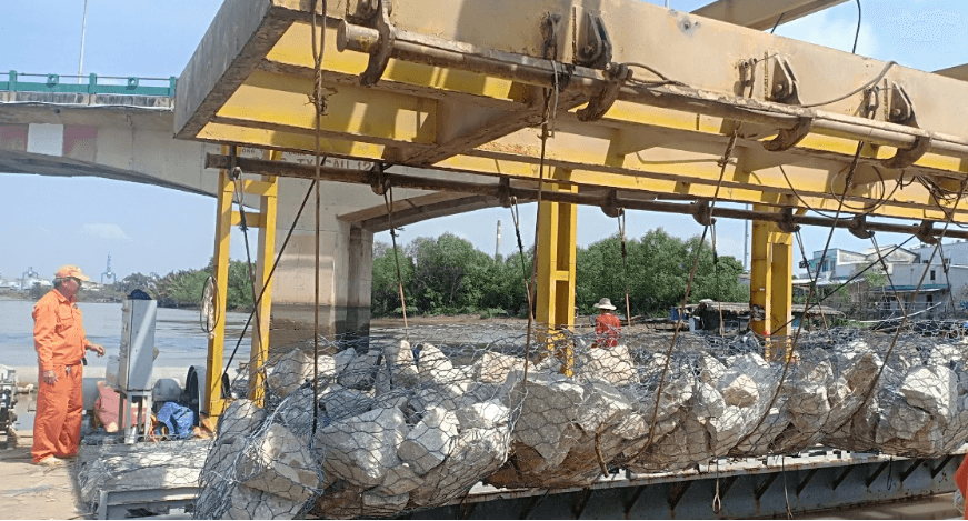 sự chuẩn bị rọ đá trong môi trường thiếu nước và gió để tiết kiệm chi phí thi công