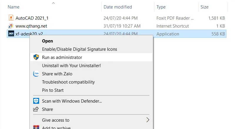 Quay lại thư mục cài đặt ban đầu của phần mềm. Trong đó sẽ có một file nén crack. Giải nén file này (lưu ý tạm thời tắt phần mềm diệt virus để tránh bị chặn). Sau khi giải nén, bạn sẽ có thư mục “Crack”. Tìm file xf-adesk20_v2 (hoặc phiên bản keygen tương ứng với 2017 cho Windows 64-bit), nhấp chuột phải và chọn “Chạy với quyền Admin” (Run as administrator).