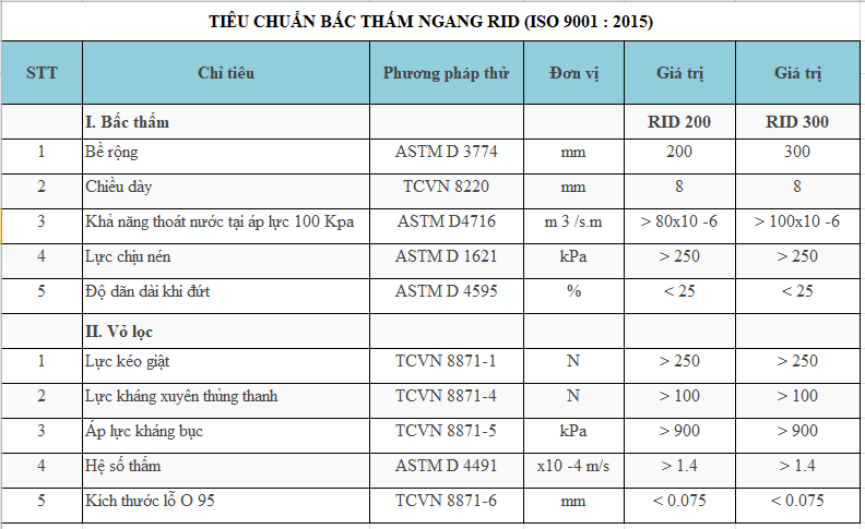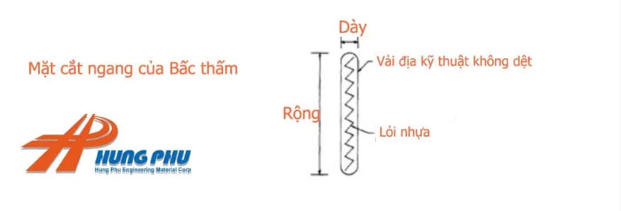 Vỏ lọc (Filter Fabric): Được làm từ dệt Polyester mỏng (màng) có tác dụng ngăn bẩn và tăng thêm khả năng thoát nước cho lõi bấc thấm