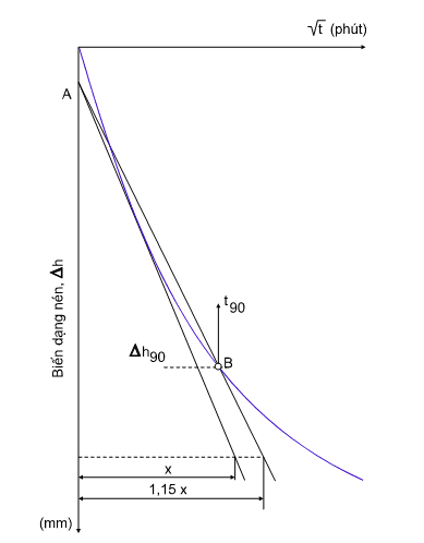 t90 là thời gian ứng với 90 % cố kết thấm, xác định theo phương pháp (phương pháp D.Taylor), tính bằng phút (min).