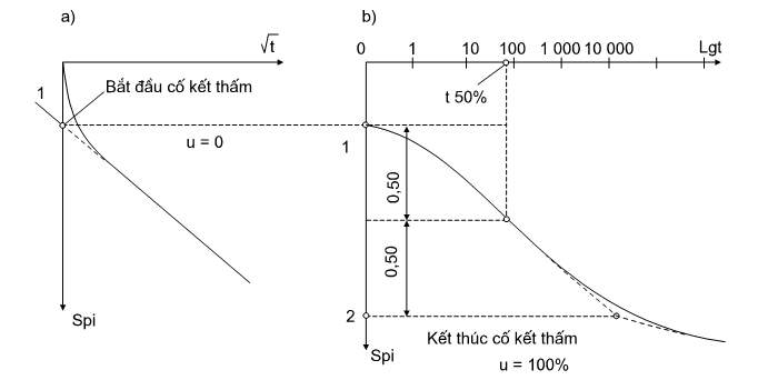 Hình 2 – Xác định giai đoạn cố kết thấm của đất bão hòa nước