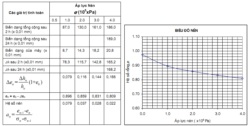 | Phần trăm nén lún | % | e | 3,9 | 6,3 | 9,3 | 12,7 | 1,73 | |