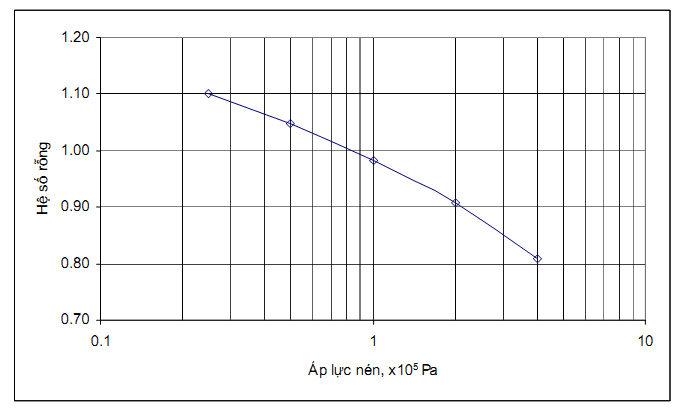 Hình C.2- Tương quan giữa hệ số rỗng và áp lực nén