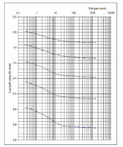 4.4.9 Khi cần tính toán độ lún của công trình theo thời gian, phải tiến hành xử lý số liệu thí nghiệm theo phương pháp riêng.